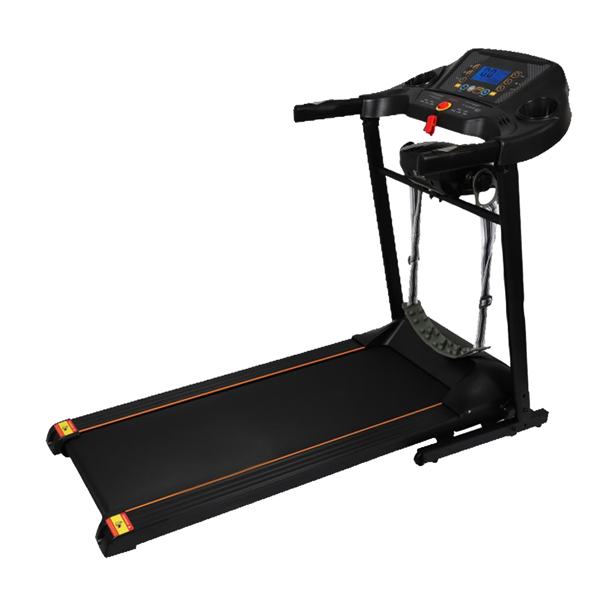 This walking treadmill maxes out at 10km/h and can be used for light jogging. The back lit LCD displays and tracks: Speed, Time, Distance, and Calories. This treadmill easily folds and can be moved effortlessly with the built in transportation wheels and soft drop hydraulic system.