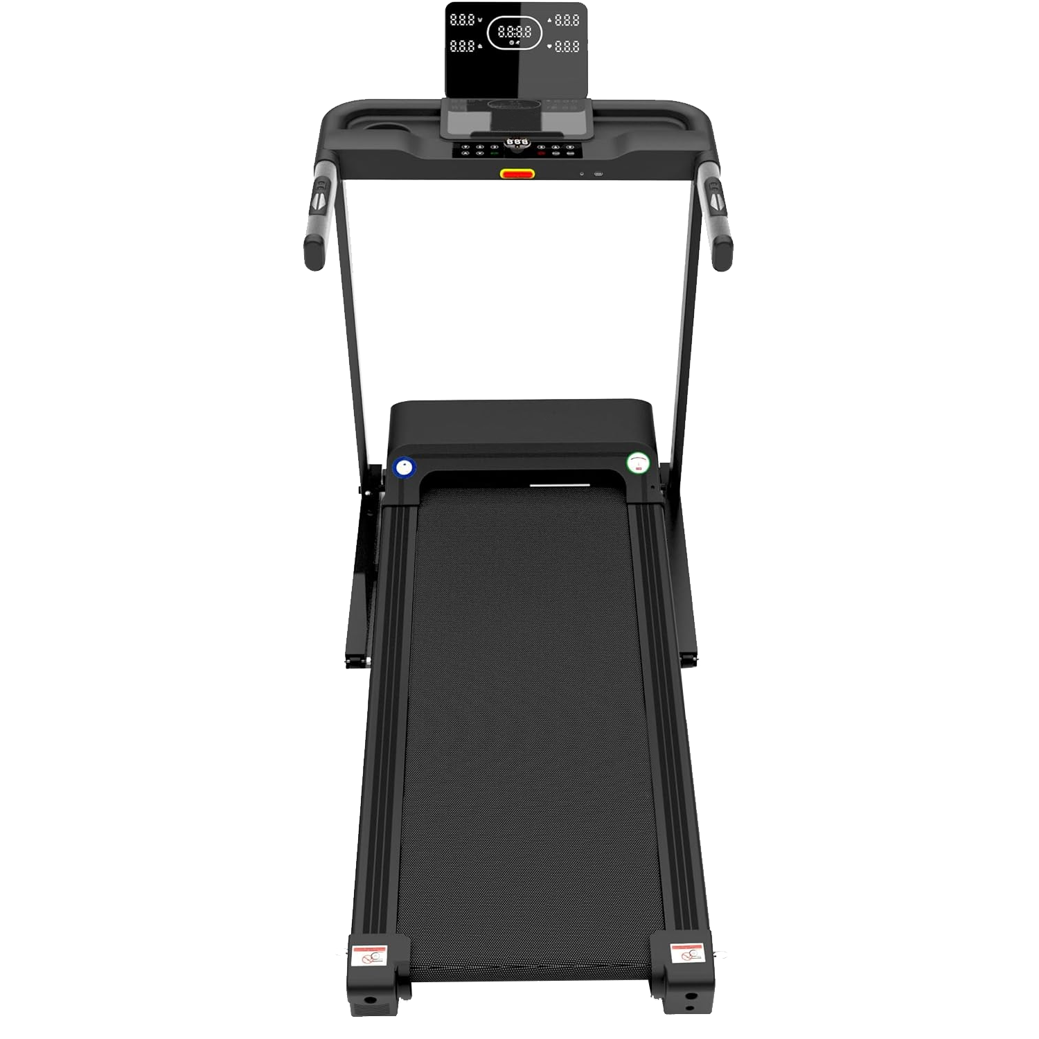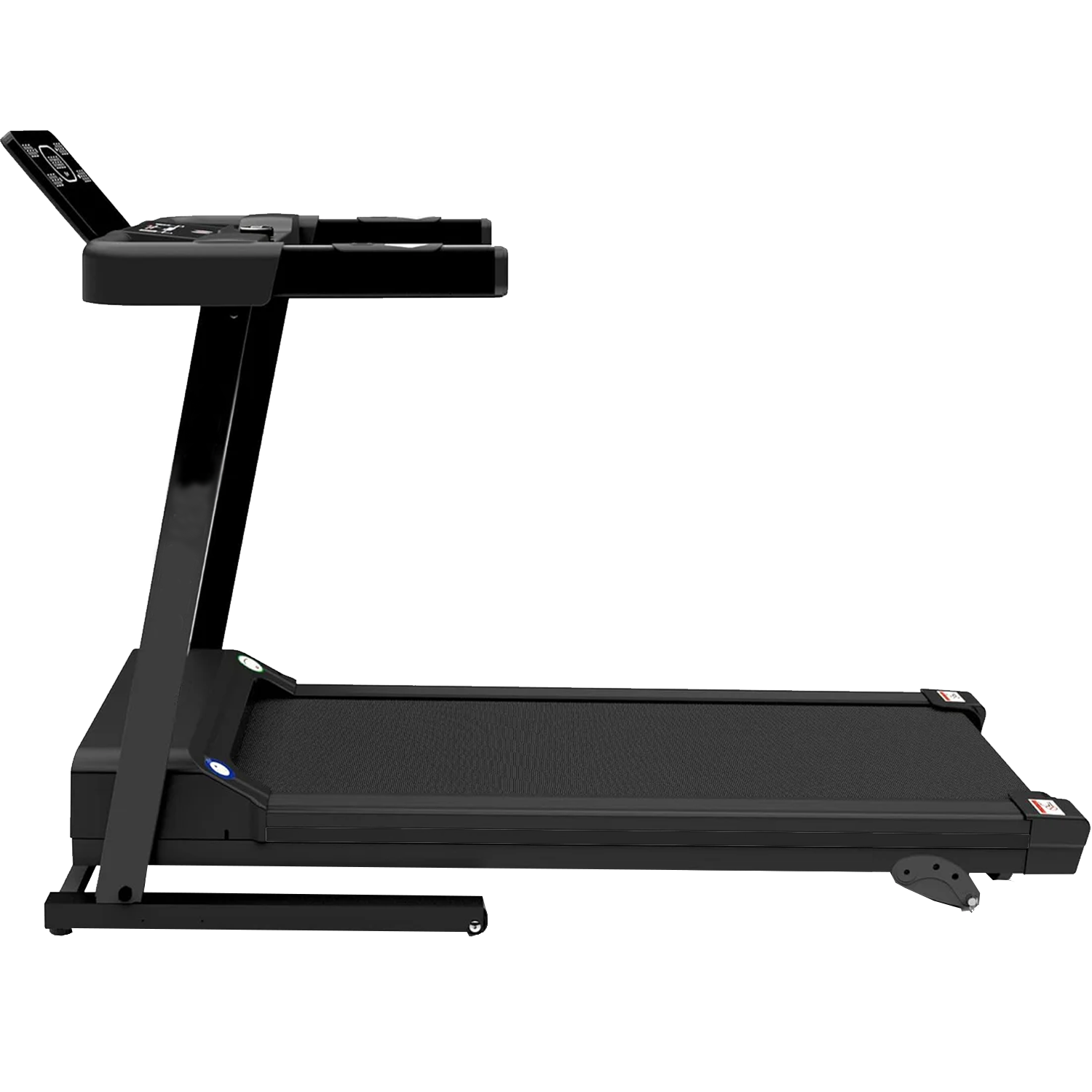 This walking treadmill maxes out at 16km/h and can be used for light jogging. The back lit LCD displays and tracks: Speed, Time, Distance, and Calories. This treadmill easily folds and can be moved effortlessly with the built in transportation wheels and soft drop hydraulic system.