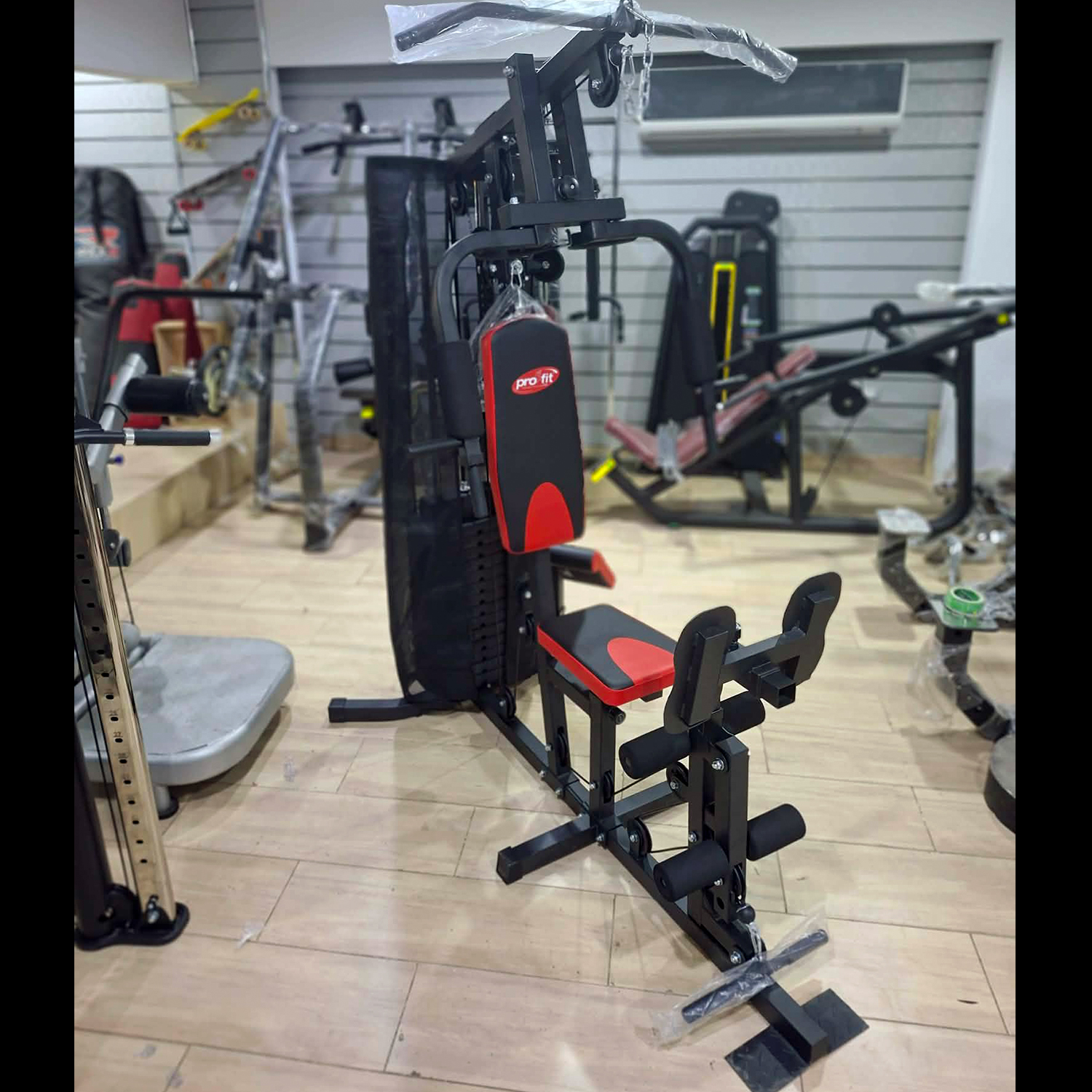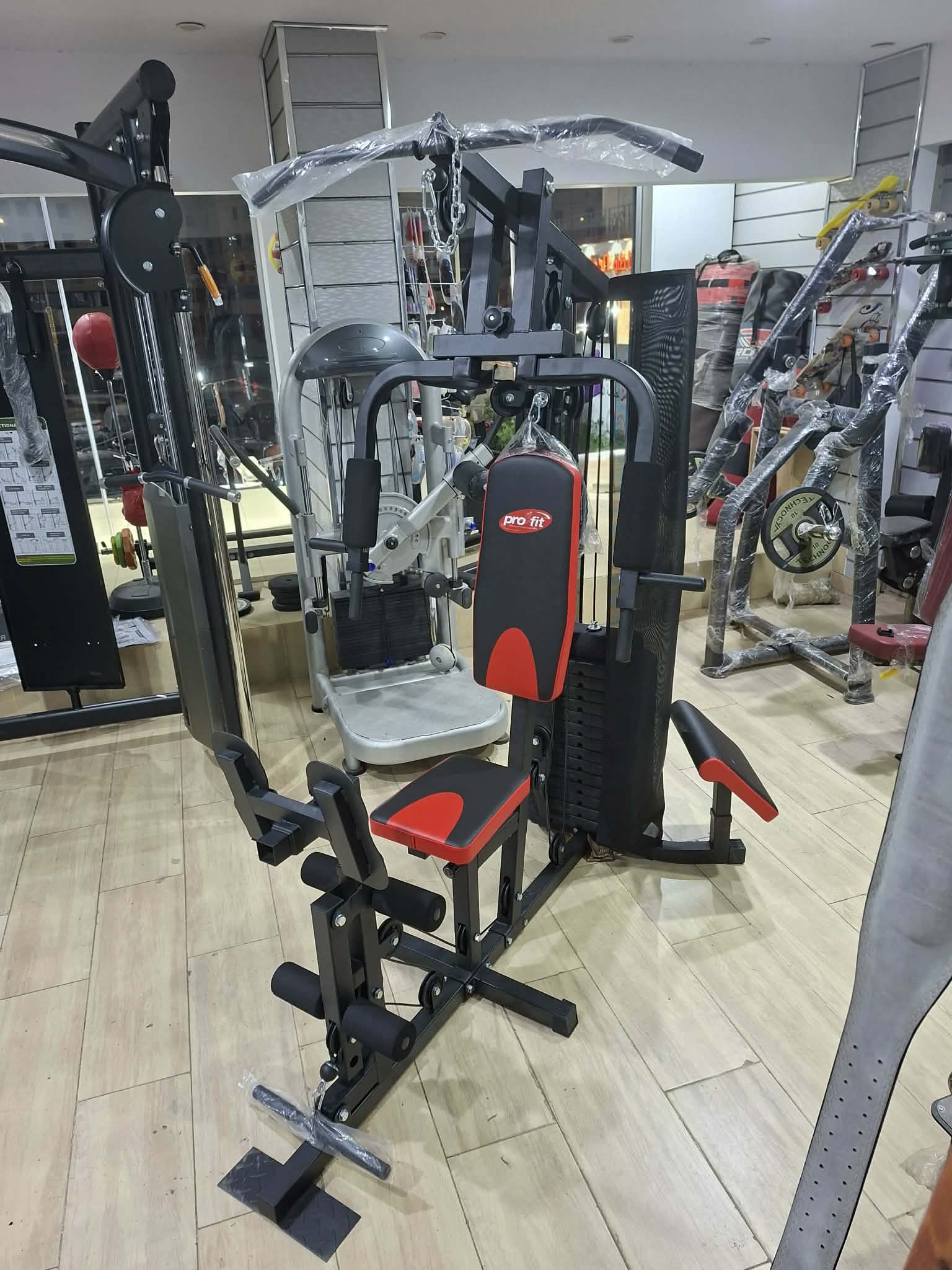 Achieve a complete workout with Pro Fit Multifunctional Home Gym Station . This versatile equipment offers over 35 exercises targeting every major muscle group. It features a heavy-duty steel construction for durability, an adjustable seat and back cushion for personalized comfort, and a 75kg weight stack for varied resistance levels.