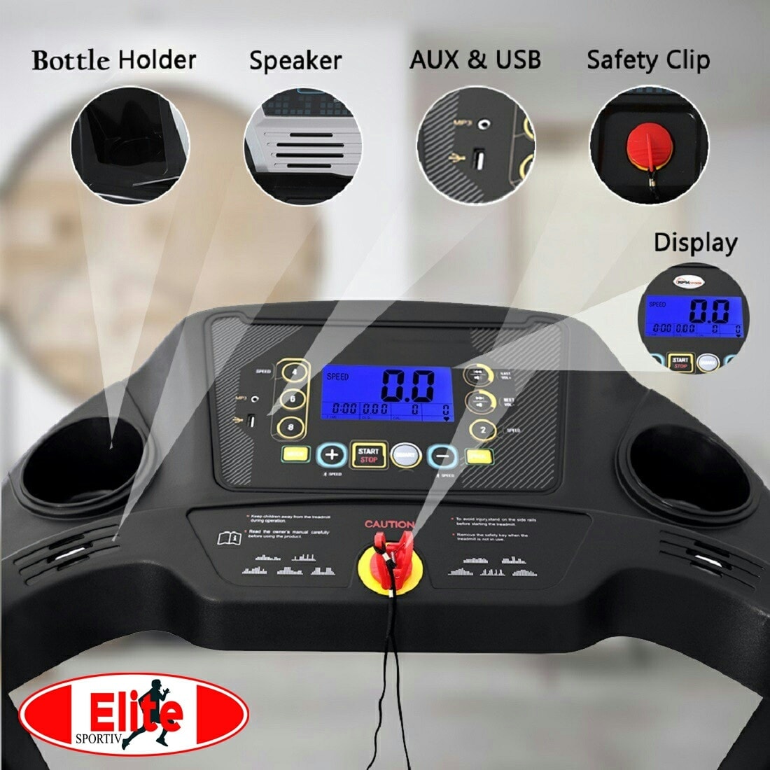 This walking treadmill maxes out at 10km/h and can be used for light jogging. The back lit LCD displays and tracks: Speed, Time, Distance, and Calories. This treadmill easily folds and can be moved effortlessly with the built in transportation wheels and soft drop hydraulic system.