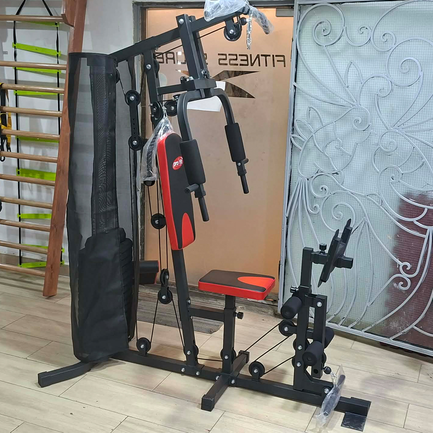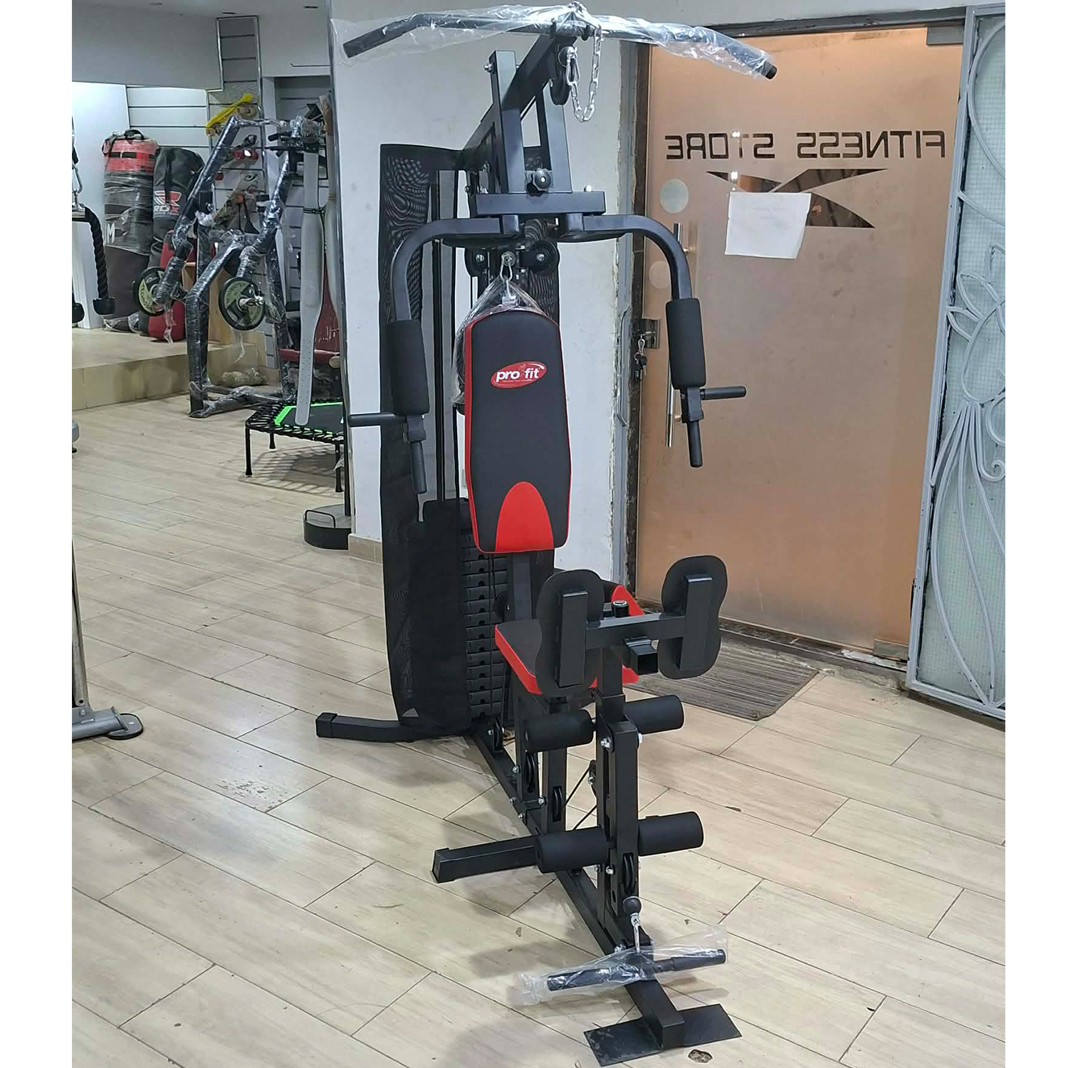 Achieve a complete workout with Pro Fit Multifunctional Home Gym Station . This versatile equipment offers over 35 exercises targeting every major muscle group. It features a heavy-duty steel construction for durability, an adjustable seat and back cushion for personalized comfort, and a 75kg weight stack for varied resistance levels.